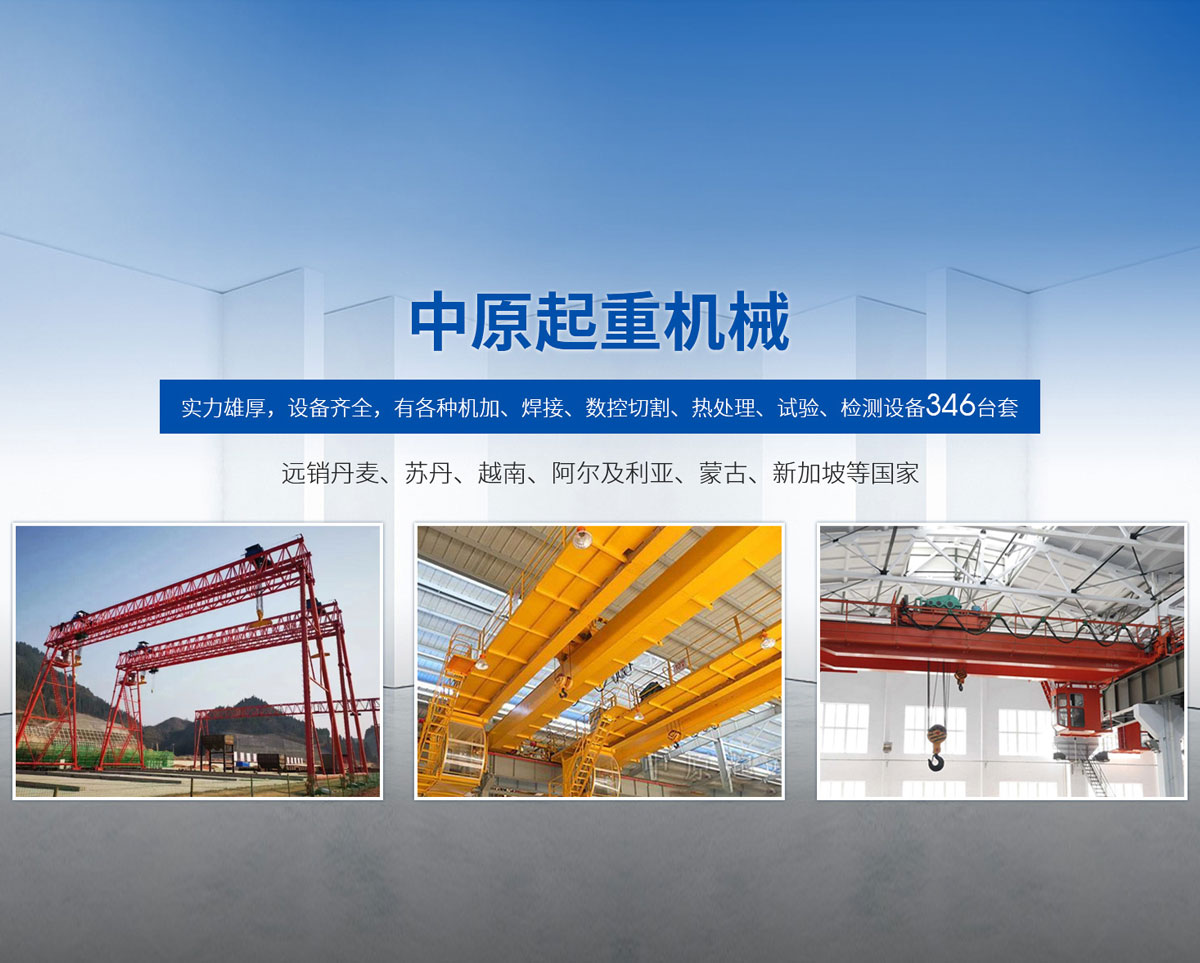 新鄉(xiāng)市中原起重機械有限公司成立于2000年,地處中原,輻射全國28個省市自治區(qū),設外埠經(jīng)銷處、辦事處268個。產(chǎn)品行銷工礦、建材、化工、冶金、電力、交通、鐵路、油田、港口等各個行業(yè)。遠銷丹麥、蘇丹、越南、阿爾及利亞、蒙古、新加坡等國家。  公司實力雄厚,設備齊全,有各種機加、焊接、數(shù)控切割、熱處理、試驗、檢測設備7臺;有機加工、熱處理、單、雙梁橋門機生產(chǎn)、檢測、安裝等9個車間,研究中心、運輸公司、安裝維修服務公司等機構(gòu),?  主要產(chǎn)品有:LD型1~20噸電動單梁起重機系列產(chǎn)品;5~600噸通用橋式、門式、冶金、上旋轉(zhuǎn)下旋轉(zhuǎn)電磁吊、絕緣、抓斗、防爆起重機系列產(chǎn)品;LH3~100噸葫蘆雙梁系列產(chǎn)品;MH5~32噸葫蘆門式系列產(chǎn)品;0.5~40噸CD1、MD1鋼絲繩電葫蘆系列產(chǎn)品;HS1型0.5~20噸手動葫蘆系列產(chǎn)品;0.5~10噸環(huán)鏈電動葫蘆系列;0.5~40噸彎道電動葫蘆系列產(chǎn)品;裝卸橋、造船門機、架橋機、鑄造吊和水電大噸位起重機系列產(chǎn)品。  公司建立了強有力的質(zhì)量保證體系和生產(chǎn)過程的質(zhì)量控制系統(tǒng),嚴格執(zhí)行國家設計、生產(chǎn)標準,有嚴格的生產(chǎn)工藝過程和標準,嚴格的檢驗、檢測標準和手段。